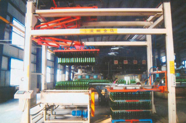 MD1200*1000型夾持式自動碼垛機廣泛應用于長頸玻璃瓶罐的自動碼垛機包裝,排瓶分自然排瓶和機械排瓶兩種形式,該機采用PLC+觸摸屏控制,自動化程度高,操作簡便,可大大減少工人數量并降低勞動強度。系統采用制動馬達控制,準確無誤地按預先設定的位置夾瓶和放瓶,采用氣囊夾瓶平穩可靠且無人工污染。